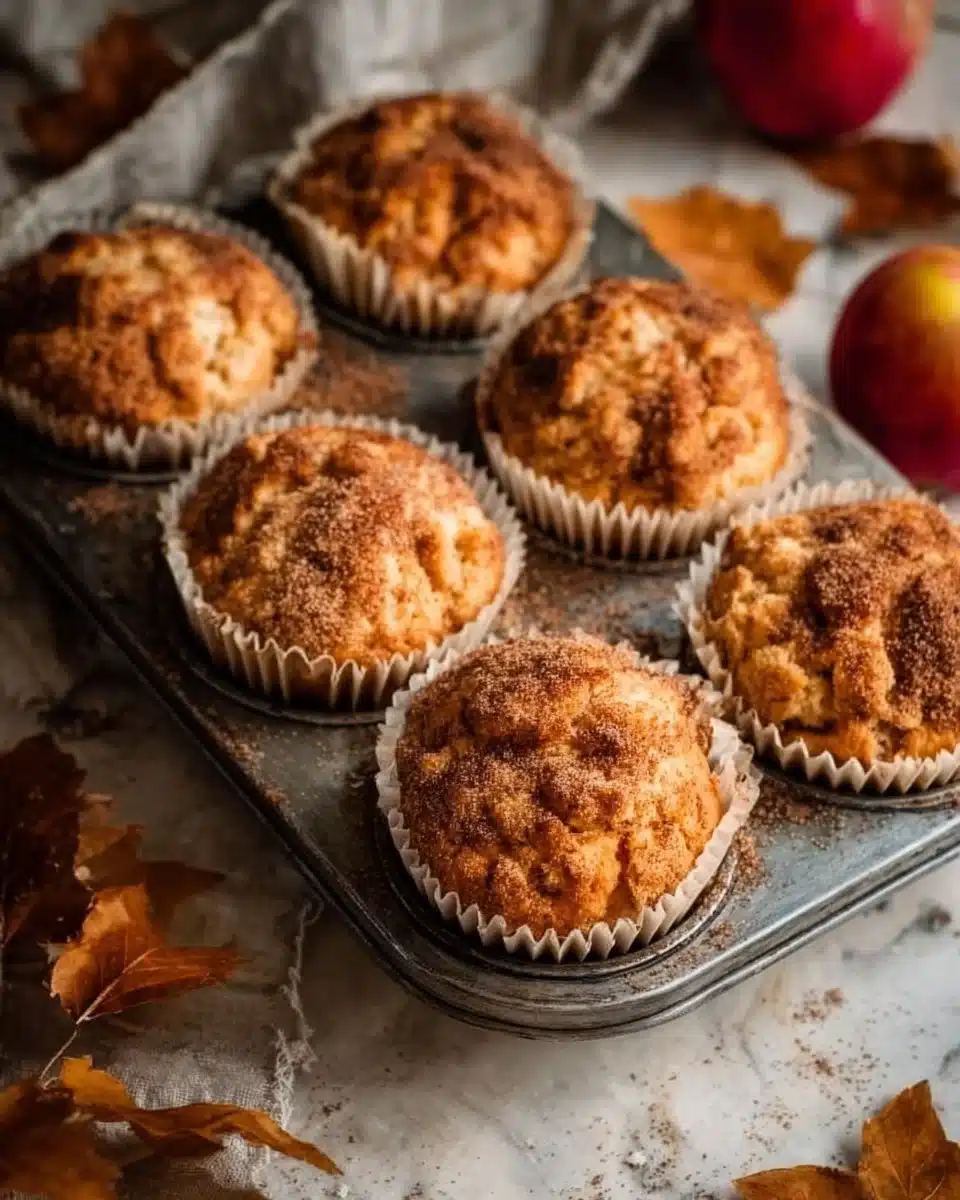 Soft and fluffy muffins infused with warm cinnamon and fresh apple flavors, perfect for breakfast or a snack.