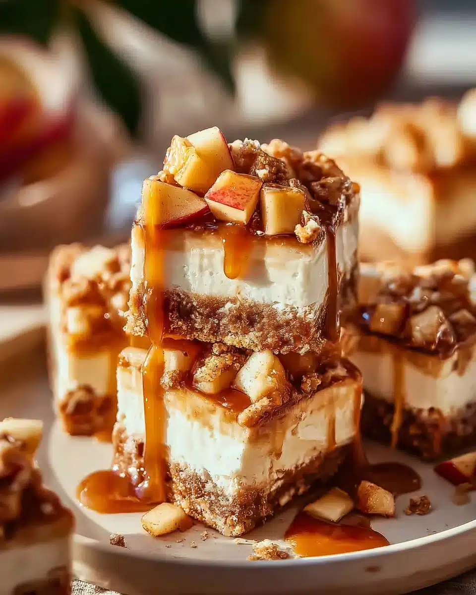 Keywords: cheesecake, caramel, apple dessert, bars, fall dessert