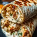 Delicious and satisfying Cheesy Chicken Garlic Wraps filled with seasoned chicken, melted cheese, and creamy garlic sauce, ideal for family dinners or meal prep.