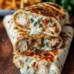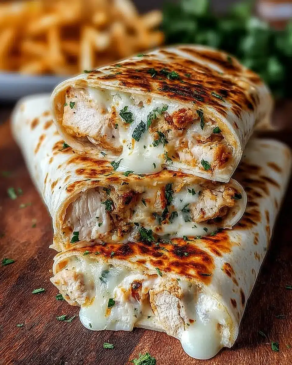 Cheesy Garlic Chicken Wraps deliver comfort in every bite, a melty, garlicky center wrapped in a golden tortilla, and they are as flexible as they are satisfying. Whether you make them for a quick weeknight meal, a make ahead lunch, or a crowd gathering, they are approachable and reliably delicious. Gather your ingredients, follow the simple steps, and enjoy the warm, cheesy goodness soon — this is the kind of recipe that quickly becomes part of the regular rotation.