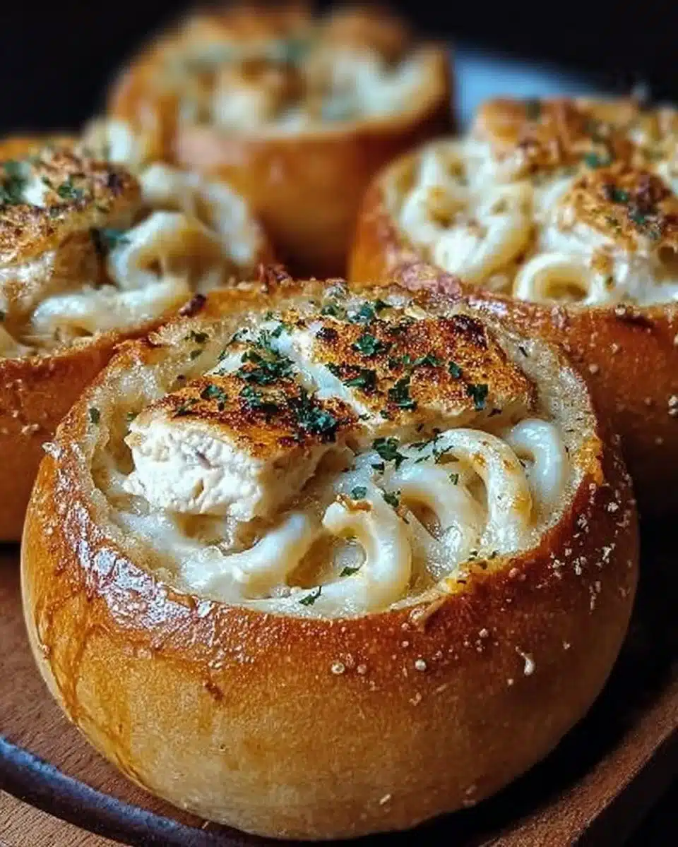Chicken Alfredo Garlic Bread Bowls