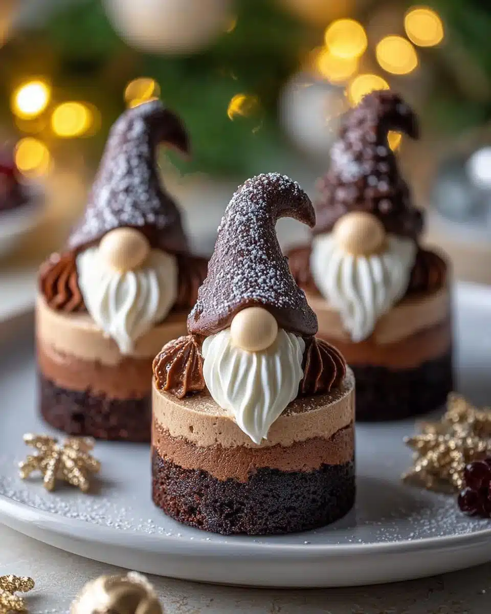 There is something utterly charming about a tiny cheesecake dressed up like a gnome, a silky chocolate hat perched above a cloud of whipped cream beard. Picture a tray of Chocolate Gnome Cheesecakes coming out of the fridge for a winter gathering, their glossy ganache catching the light while the room fills with the warm scent of chocolate and sweet cream. They feel playful enough for a holiday table, elegant enough for an intimate dinner, and forgiving enough to make on a busy afternoon, which is why these little treats become instant favorites in any kitchen. If you enjoy chocolate-forward desserts or are looking for whimsical party bites, these cheesecakes pair beautifully with other treats like brown butter chocolate chip cookies for a cozy dessert spread.