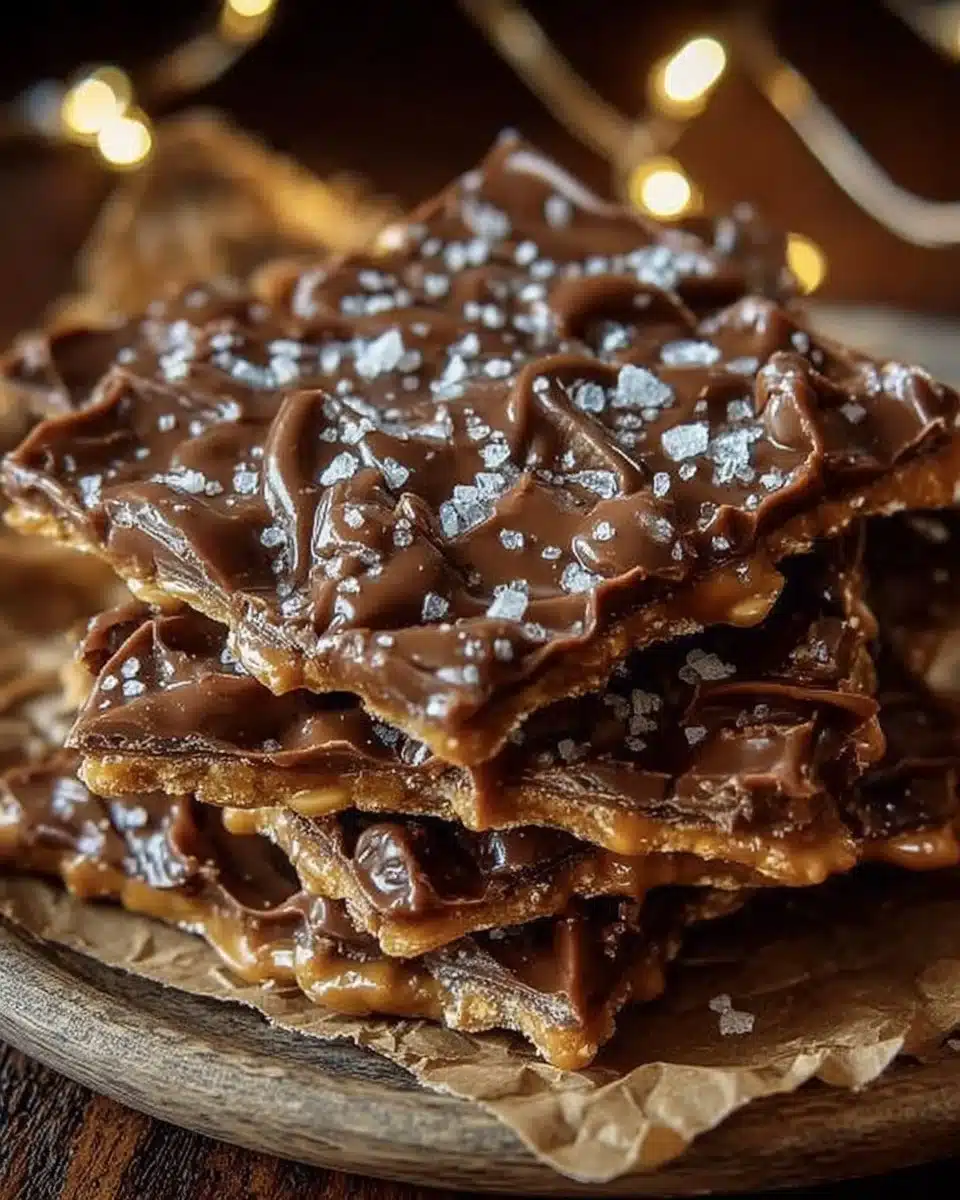 A delightful holiday treat that combines crunchy Saltine crackers with buttery caramel and glossy chocolate.