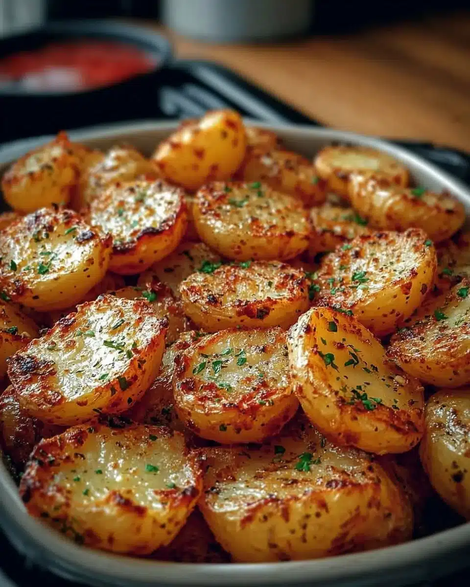Golden, crispy roasted baby potatoes tossed with savory seasonings, perfect for a cozy evening.