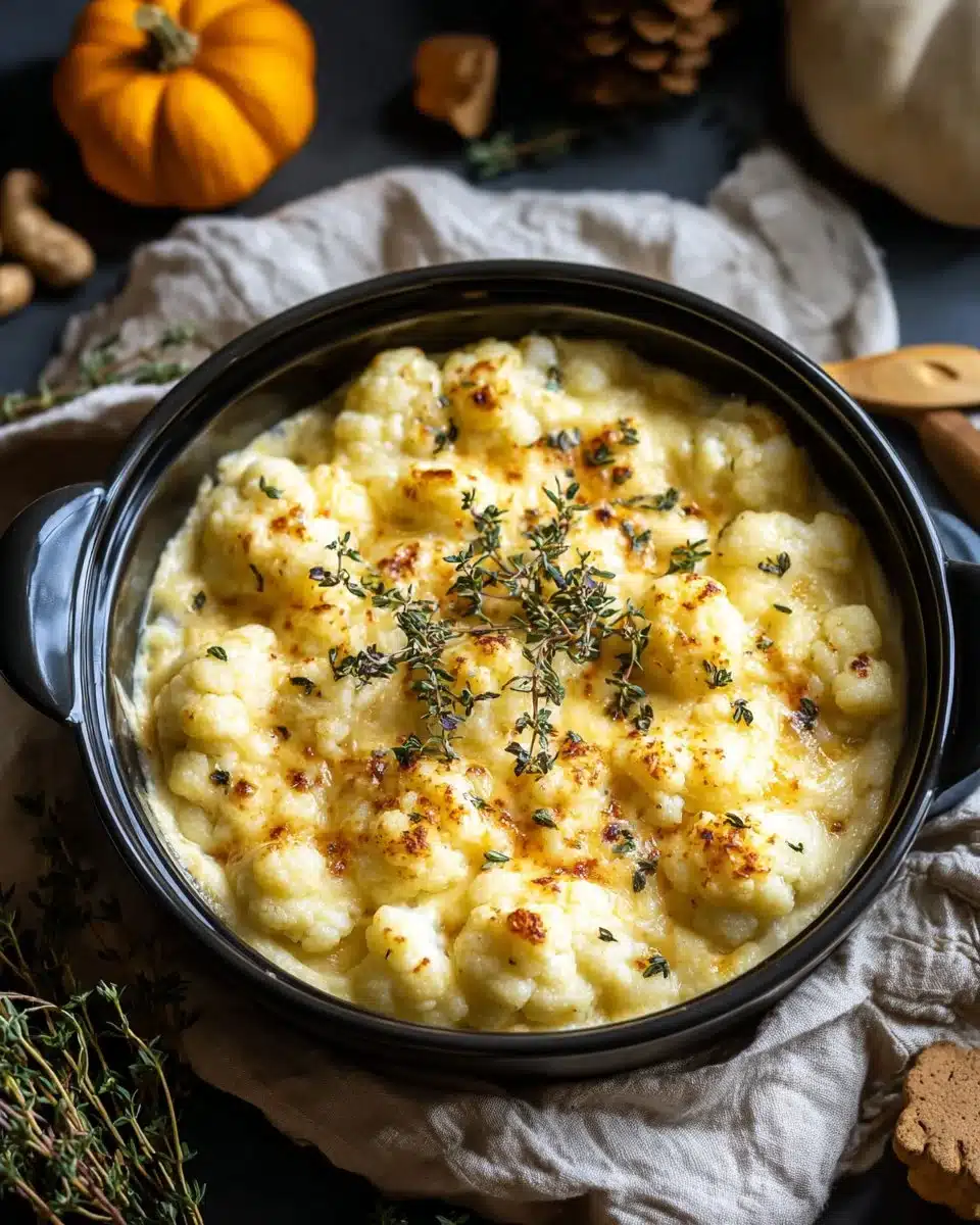 A delicious and comforting dish featuring creamy cheese sauce and tender cauliflower, perfect as a side or vegetarian main course.