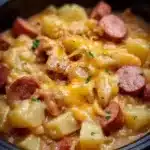 A comforting slow cooker dish featuring tender potatoes, chicken sausage, and melted cheese, perfect for chilly weeknights and potlucks.