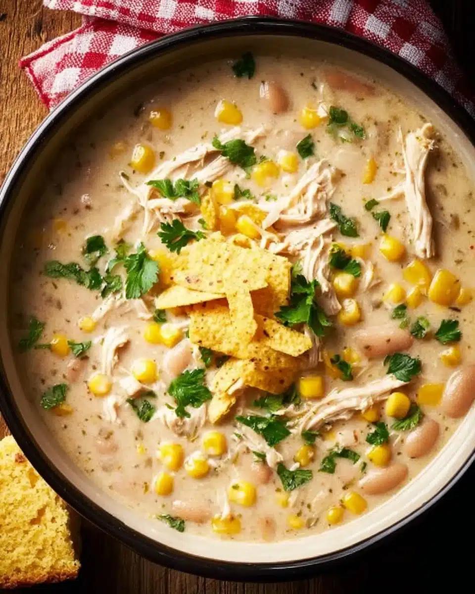 A comforting and creamy white chicken chili that’s easy to prepare in a slow cooker, perfect for chilly evenings or busy weekdays.