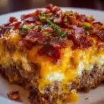 Garlic Parmesan Bacon Cheeseburger Casserole: Juicy Bliss! brings the comfort of a cheeseburger to your oven, with a creamy, garlicky sauce, melty cheeses, and a satisfying crunchy top. Swap in turkey bacon for a lighter, leaner touch without losing the familiar smoky bite, and enjoy how easily this dish becomes a weeknight hero or a potluck favorite. Make it soon, invite people over, and let the bubbly, golden casserole do the inviting.