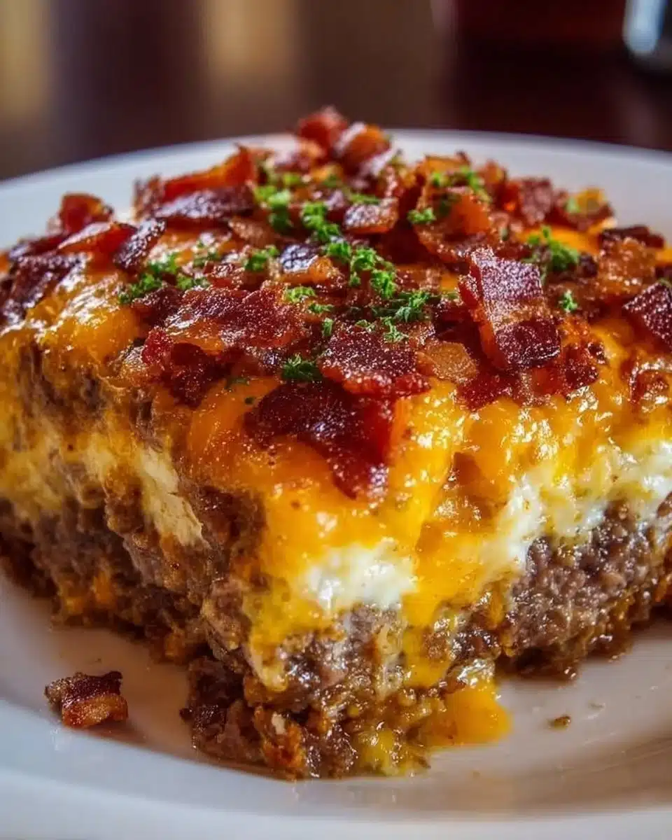 Garlic Parmesan Bacon Cheeseburger Casserole: Juicy Bliss!