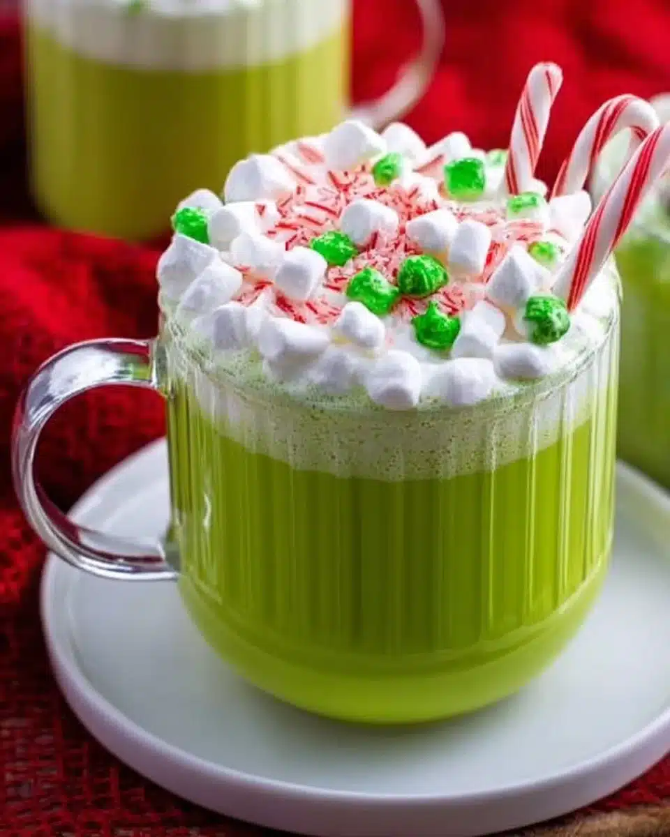 A steaming mug of emerald green hot chocolate, velvet-smooth and topped with a cloud of whipped cream, feels like a holiday hug in a cup. Picture snow falling outside a warm kitchen window, the cocoa aroma rising and the bright green color bringing out childish smiles, this Grinch Hot Chocolate is perfect for festive mornings, movie nights, or anytime you want a playful, cozy treat.