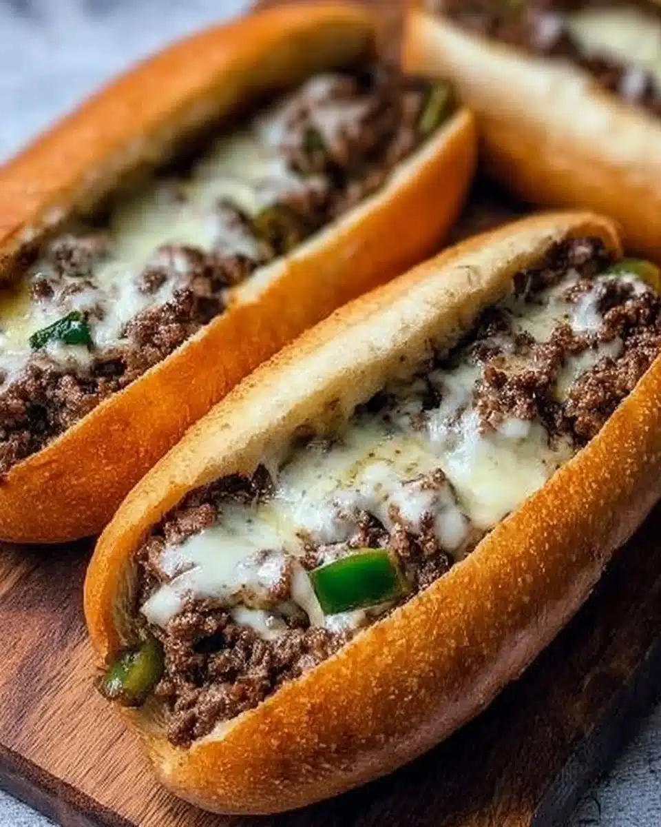 Ground Beef Philly Cheesesteaks deliver bold flavor with minimal fuss, and they shine because they balance texture and richness. The ground beef browns quickly and soaks up the sweet notes of slowly cooked onions, while the provolone melts into silky ribbons that bind everything together. These sandwiches are adaptable, so you can tailor them to be leaner or richer depending on the cut of beef and the additions you choose.