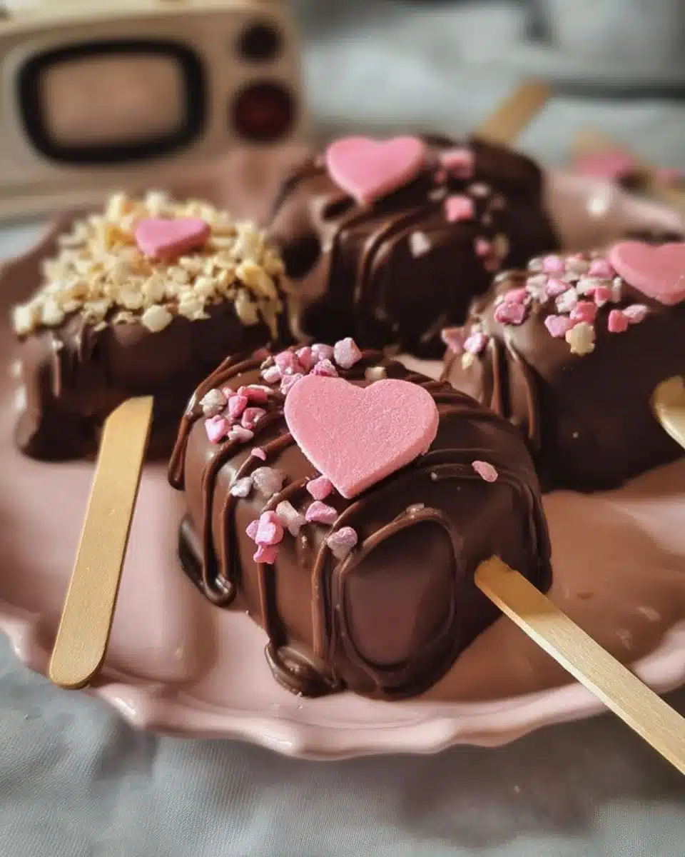 There’s something instantly cozy about melted chocolate and a tray of little heart-shaped treats waiting to set. These Heart Brownie Cakesicles are rich, fudgy, and dipped in a silky chocolate shell, then finished with pink sprinkles for that perfect Valentine vibe. They’re the kind of dessert that looks bakery-level, but the steps are surprisingly simple. Perfect for gift boxes, dessert boards, classroom parties, or a sweet night in.