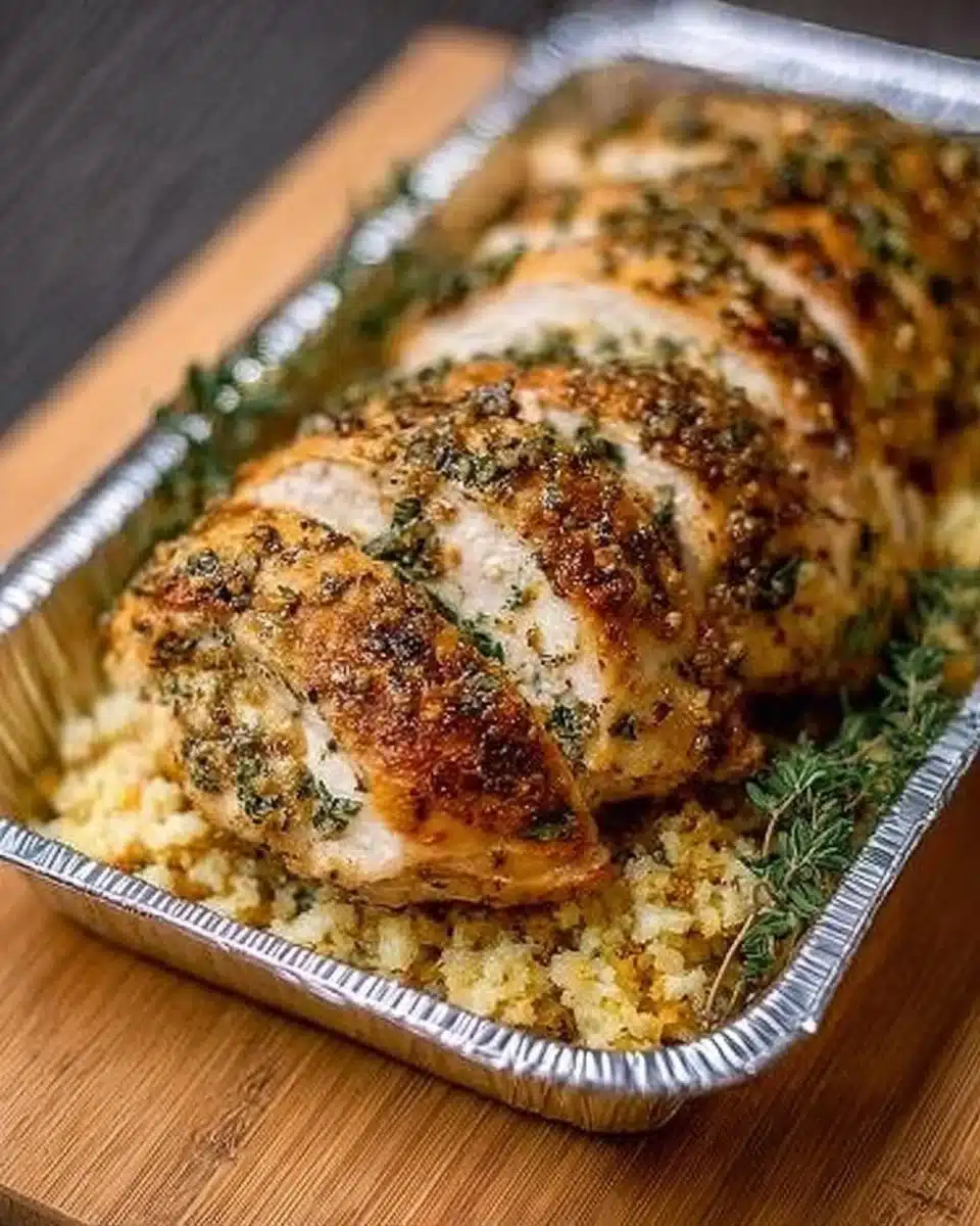 Any herbed stuffing mix works because it already contains dried herbs that meld with the chicken as it cooks. If you prefer a particular herb profile, choose mixes labeled garlic and herb or sage and onion, and consider adding fresh parsley or thyme for brightness.