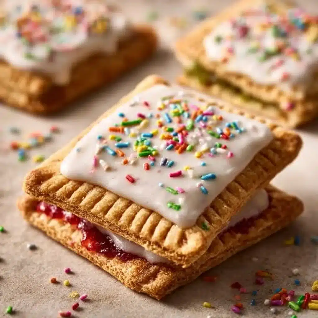 - Frost each pop tart with glaze and top with the decorating sugars, press lightly so the sugar adheres and the surface looks playful and sparkly.