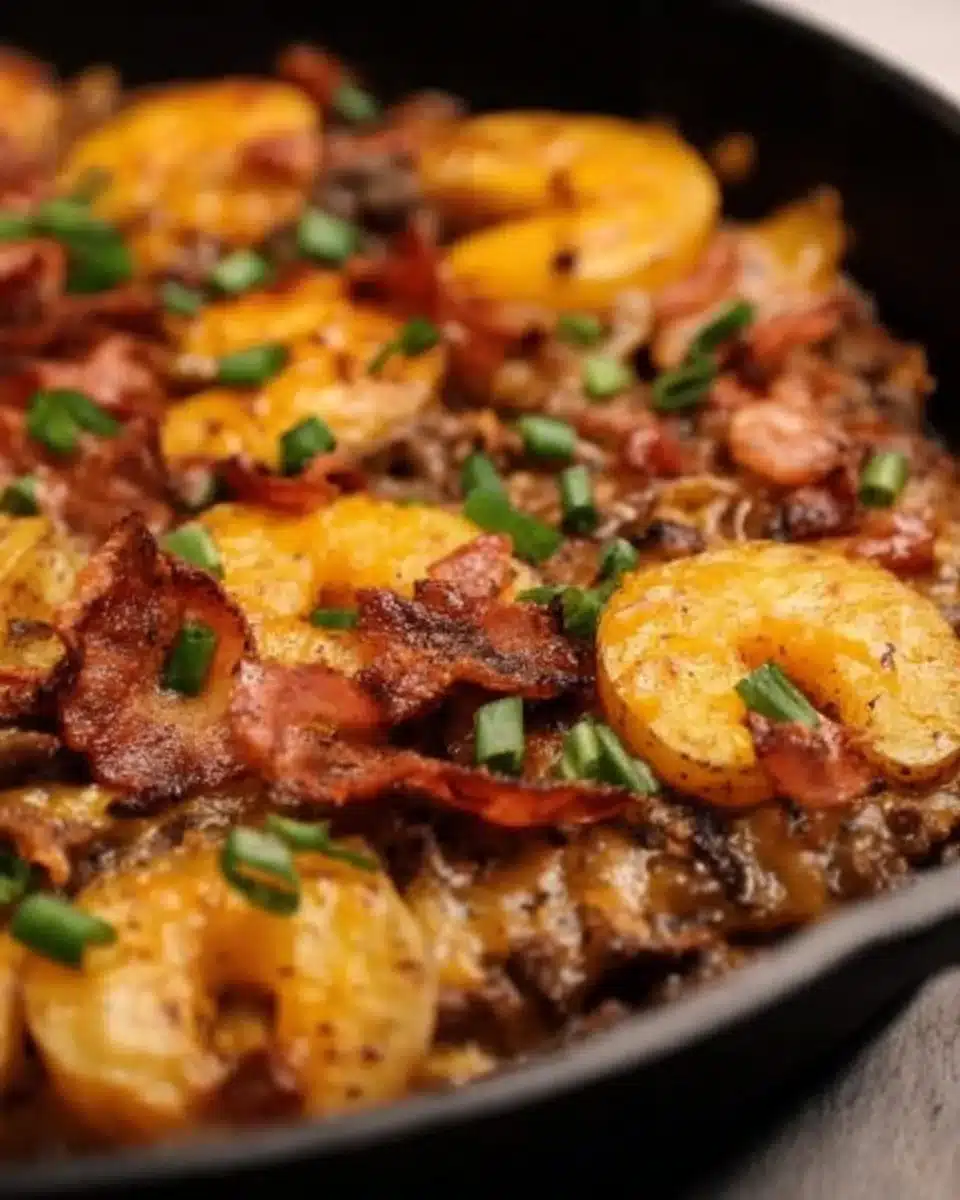 A skillet bubbling with sizzling beef, soft golden cubes of potato, and a ribbon of melted cheese fills the kitchen with a warm, savory aroma that feels like home. Loaded Ground Beef and Potatoes Skillet is the kind of one-pan supper that makes weeknights feel special, while still being quick enough for busy evenings. Serve it with a crisp salad for a light contrast, or let it stand alone as a comforting, family-friendly main.