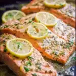 Once done, remove the salmon from the oven and let it rest for about 2 minutes. Squeeze fresh lemon juice over the fillets before serving; this brightens the flavors and adds a refreshing zing.