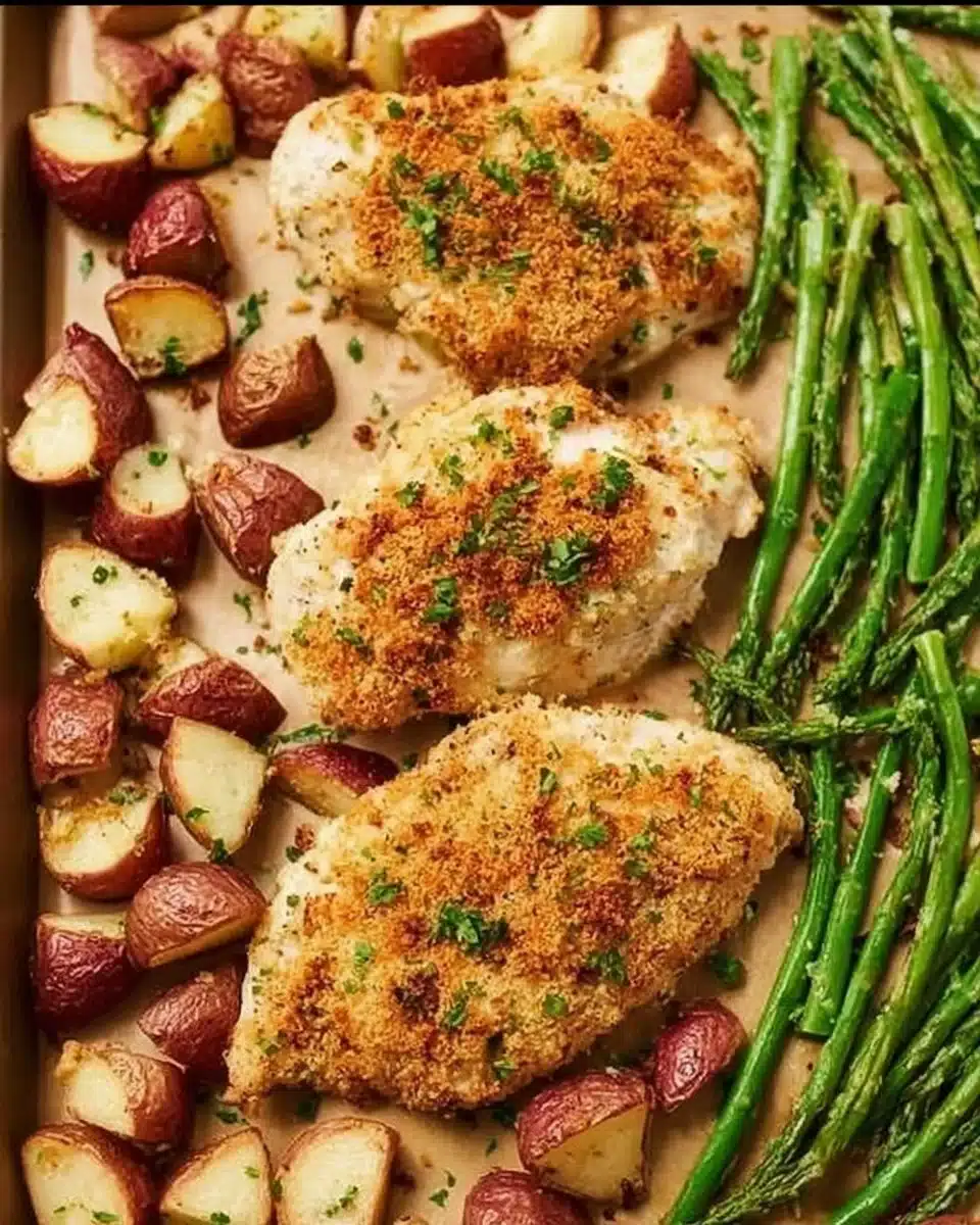 Parmesan Crusted Chicken Sheet Pan Dinner