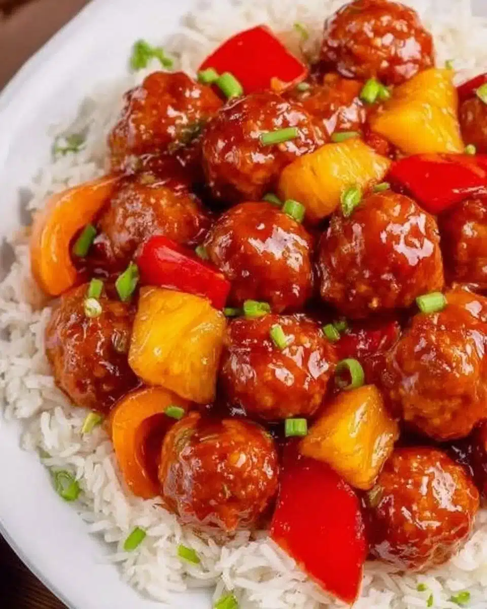 Tender meatballs simmered in a sweet and tangy pineapple-barbecue sauce, perfect for family dinners or potlucks.