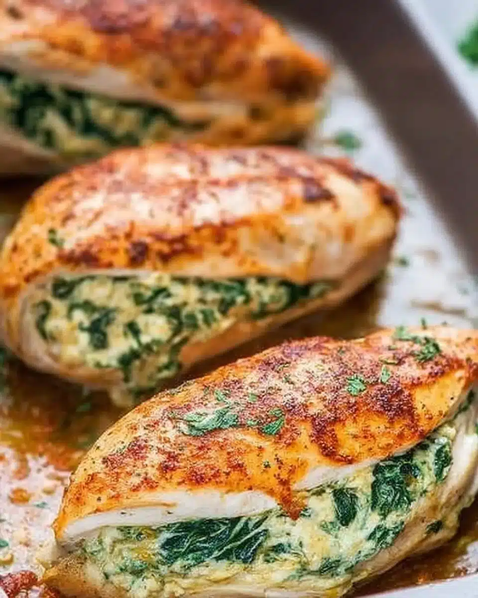 This recipe shines because it combines tender roasted chicken with a bright, creamy spinach filling, offering plenty of flavor without heavy carbs. The contrast between the lightly browned exterior and the melt-in-your-mouth interior is delightful, and the aromas of garlic and lemon make it inviting from the moment it hits the oven.