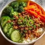 If you like exploring related bowls, you may find inspiration from a bold, spiced ground beef option like the Korean ground beef bowl that reimagines flavors with chili and garlic.