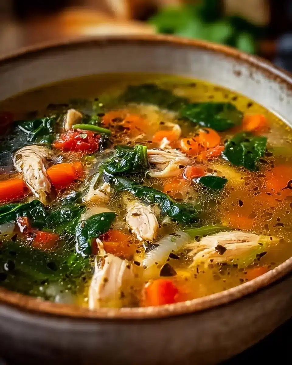 A warm and comforting Tuscan-Style Chicken Soup filled with tender chicken, fresh vegetables, and fragrant herbs, perfect for cozy dinners or lazy weekend lunches.