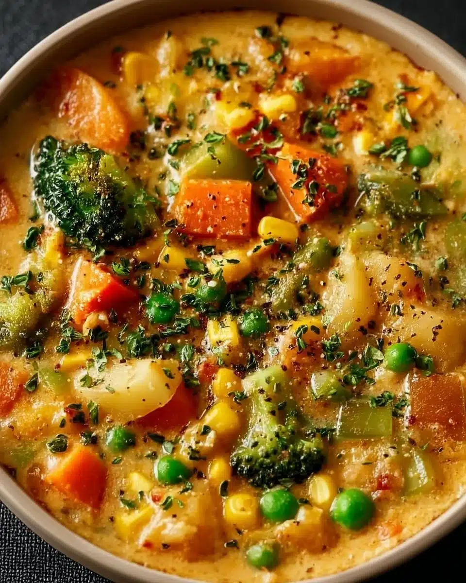 A hearty and creamy vegetable soup that captures all the flavors of a traditional pot pie, perfect for comfort food lovers.